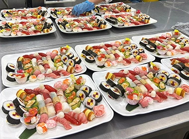 本日は横浜市港北区にある施設に「巻き鮨」や「オードブル」などのお料理の仕出しを行いました。